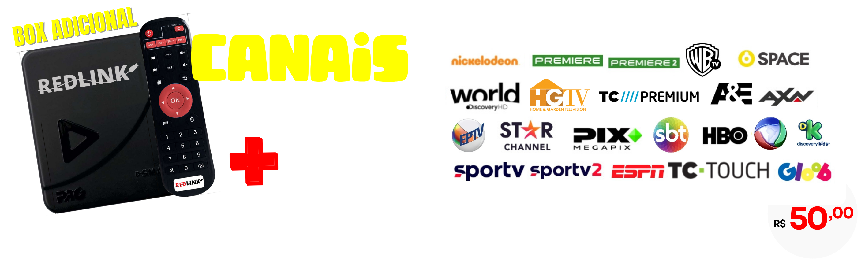 Com o BOXTV REDLINK, você tem canais ao vivo, filmes e séries na palma da mão. São diversos canais incríveis — tudo com imagem de alta qualidade e navegação super rápida.